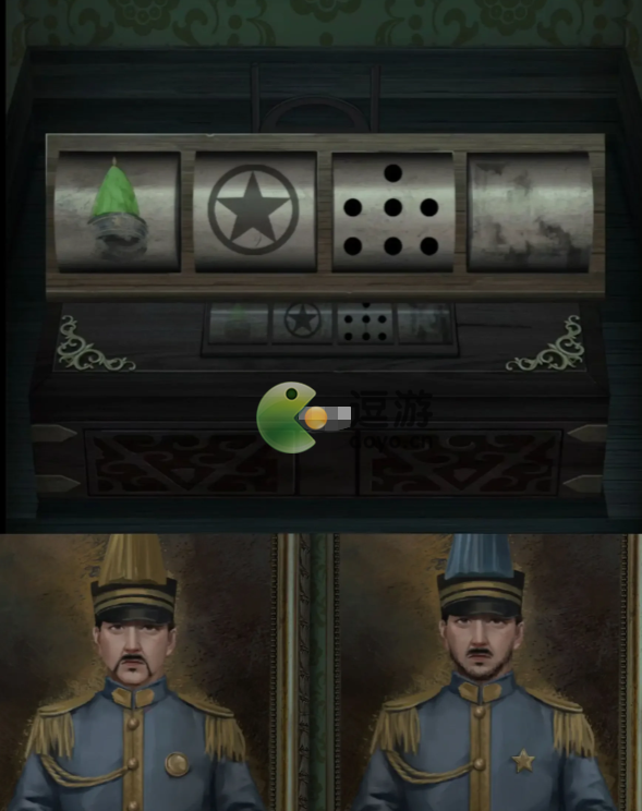 得到【抚尺】,切换场景,窗台上得到【折扇】,盒子密码根据两边大帅像〈蓝色+黄色 3+4 星星+圆 空〉打开得到【唐刀】