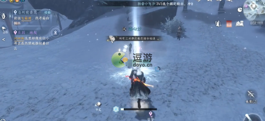 8、休息片刻,等待暴风雪在沧州1007,1026解锁下一阶段任务并前往漂浮冰面解开天仪迷阵。