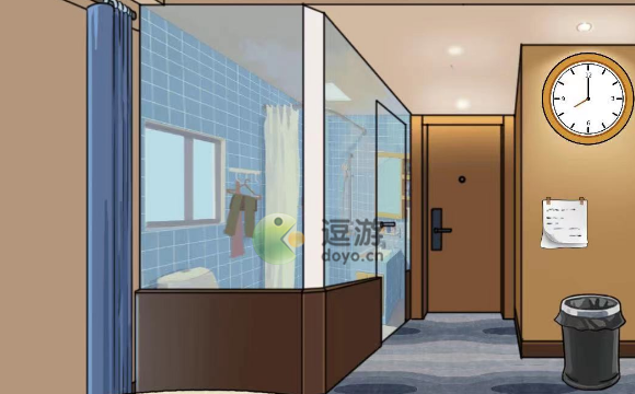 2、点击纸条,再点击门选择开门,前台进入后点击左侧浴室区域
